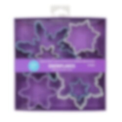 7 Ausstechformen aus Stahl, die wunderschöne Schneeflocken in verschiedenen Größen darstellen. Backen Sie damit schöne Kekse für die Kinderparty.