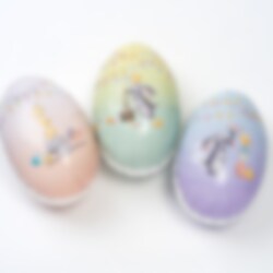 Diese 15 cm großen Ostereier gibt es in verschiedenen wunderschönen Pastellfarben und sind mit niedlichen Hasenmotiven verziert. Sie sind das perfekte Ostergeschenk für Kinder und Erwachsene.