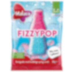 Leckere Süßigkeiten, die Flaschen mit Tutti-Frutti-Geschmack darstellen. Die Tüte enthält 85 Gramm.