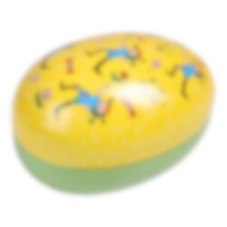 Pippi ist bereit, Ostern noch fröhlicher zu machen! Dieses farbenfrohe Osterei aus Blech ist mit Pippi Langstrumpf-Motiven verziert und perfekt zum Befüllen mit Süßigkeiten oder kleinen Überraschungen. Ein echter Hingucker, der Jahr für Jahr wiederverwendet werden kann!
