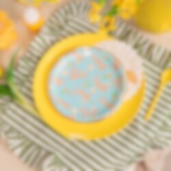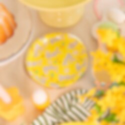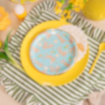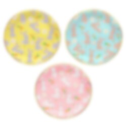 Decken Sie den Tisch für eine festliche Ostermahlzeit mit diesen charmanten Tellern, die mit süßen Hasen, Karotten und Blumen verziert sind. Die drei verschiedenen Pastellfarben sorgen für eine verspielte und frühlingshafte Atmosphäre, während die glänzenden Golddetails eine elegante Note hinzufügen.