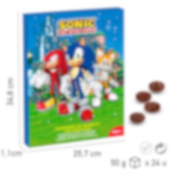 Adventskalender mit leckeren Schokoladenstücken im Sonic the Hedgehog-Design. Der Kalender ist ca. 35 × 25 cm groß.