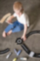Tut tut, hier kommen die Autos! Jabadabados Autobahn aus Holz ist das perfekte Spielzeug für alle autobegeisterten Kinder. Die fünf Autos sind bereit loszufahren, um zu sehen, wer zuerst die Bahn umrundet. Wer ist am schnellsten? Die Bahn hat beidseitig Spuren, so dass man sie auf verschiedene Weisen zusammenbauen kann. Lassen Sie die Kreativität fließen. Die Autobahn kann mit Jabadabados Garage zusammengebaut werden. Perfekte Größe für kleine Hände und fördert kreatives Spielen. Beim Bauen und Spielen entwickelt sich die Motorik des Kindes.