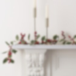 Steigern Sie die Weihnachtsstimmung mit unserer eleganten Blumengirlande aus Eisenkrautblättern und roten Beeren. Diese Girlande strahlt eine klassische Weihnachtsatmosphäre aus und wird während der Feiertage ein schönes Detail in Ihrem Zuhause sein. Sie ist perfekt, um sie über dem offenen Kamin, entlang der Treppe oder als stimmungsvolle Tischdekoration zu drapieren. Kombinieren Sie die Girlande mit anderen Weihnachtsdekorationen, um eine warme und einladende Weihnachtsatmosphäre zu kreieren. Länge 180 cm.