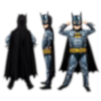 - Enthält: Jumpsuit mit detaillierten Batman-Drucken, schwarzen Umhang und Maske.