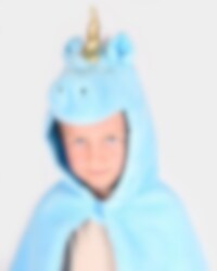 Die Kinder kö nnen sich wie ein magisches Einhorn fühlen, mit diesem blauen Einhorn Cape Kinderkostüm für Kinder. Der Umhang ist weich und kuschelig, aus flauschigem Plüsch gefertigt und kommt mit einer leicht gepolsterten Kapuze, die mit einem Goldhorn geschmückt ist. Der Mantel und der Schwanz aus Kunstpelz, sowie der Klettverschluss am Hals vervollkommnen den magischen Look.