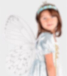 Man kann spielen, dass man mit diesen traumhaften Flügeln davon schwebt. Die Flügel haben schöne Details in silbernem Glitzer. Einfaches An- und Ausziehen dank der elastischen Schultergurte mit Satinüberzug. Jeder Flügel ist etwa 55 x 22 cm groß.