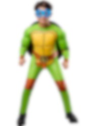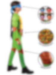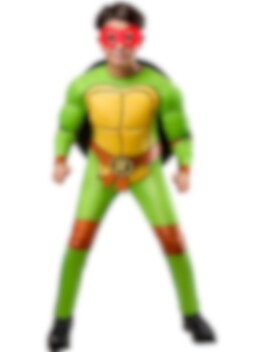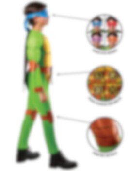 Bereit, gemeinsam mit deinen liebsten Ninja-Schildkröten das Verbrechen zu bekämpfen? Mit diesem 4-in-1 Kostüm der Ninja Turtles kann Ihr Kind zwischen Leonardo, Donatello, Raphael und Michelangelo wählen. Das Kostüm hat eine gepolsterte Brust und Arme für einen muskulösen Look sowie einen abnehmbaren Panzer am Rücken für noch mehr Action.