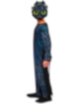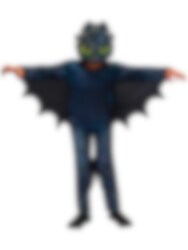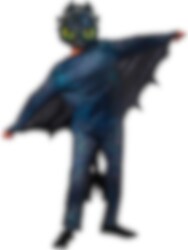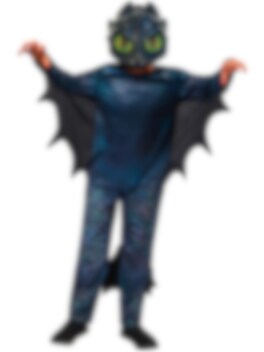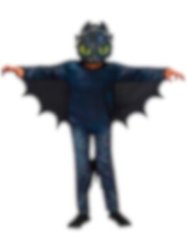 Verwandeln Sie Ihr Kind in den legendären Drachen Ohnezahn aus „Drachenzähmen leicht gemacht“! Dieses detailreiche Kostüm zeigt ein realistisches Schuppenmuster, große Stoffflügel und einen langen Drachenschwanz. Die mitgelieferte Maske mit großen grünen Augen rundet das Outfit perfekt ab.