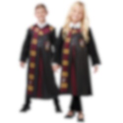 Die Harry Potter Gryffindor-Robe besteht aus einem schwarzen Umhang mit wunderschönen fotorealistischen Drucken und einer Kapuze. Der Anzug ist in fünf Größen erhältlich, die für Kinder von 3-4 Jahren bis 11-12 Jahren geeignet sind. Bestehen aus 100 % Polyester. Dies ist ein offiziell lizenziertes Harry Potter-Produkt.