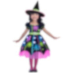 Kinder können sich wie eine farbenfrohe Hexe fühlen, bereit für magische Abenteuer mit diesem Neon Spider Witch Kinderkostüm. Zum Kleid gehören ein Hut und neongefärbte Details, die wirklich die Aufmerksamkeit auf sich ziehen. Strumpfhosen und Schuhe sind nicht enthalten.