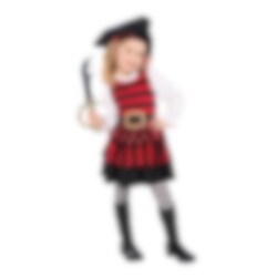 Stilvolles Kostüm bestehend aus einem Piratenkleid mit angenähtem Gürtel, schwarz-weiß gestreifter Strumpfhose und einem Piratenhut. Das kommt bei den Kindern auf der Piratenparty sicher gut an. Erhältlich in zwei verschiedenen Größen für Kinder im Alter von 3-4 Jahren und 4-6 Jahren. Das Kostüm besteht aus 100% Polyester. Handwäsche und Lufttrocknung.