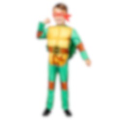 - Enthält: Einen grünen Jumpsuit mit Schild auf dem Rücken und vier Augenmasken in den verschiedenen Farben der Ninja Turtles.