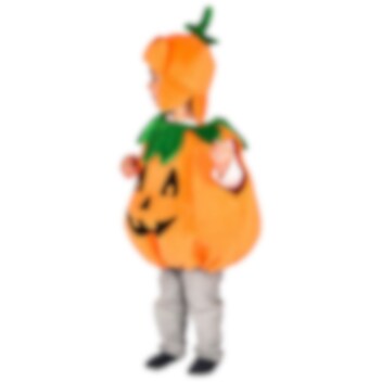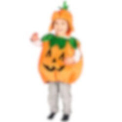 Das Kostüm besteht aus einem Kostüm in Form eines Kürbis und einem Hut. Der Kostüm besteht aus 100 % Polyester und ist in einer Größe erhältlich, die für Kinder zwischen 2 und 4 Jahren geeignet ist. Von Hand waschen und trocknen.
