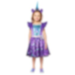 My Little Pony Izzy Moonbow Kinderkostüm beinhaltet ein farbenfrohes Kleid und ein Diadem. Das Kostüm besteht aus 100 % Polyester. Schuhe sind nicht im Lieferumfang enthalten.