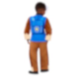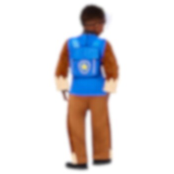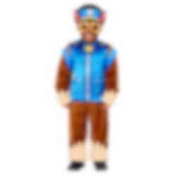 Das Paw Patrol Chase Kostüm Deluxe beinhaltet einen Overall in Chase's Farben, eine Halbmaske aus Kunststoff, die Chase's Gesicht darstellt, und einen Rucksack.