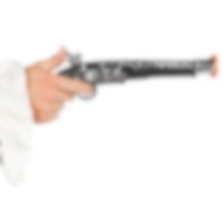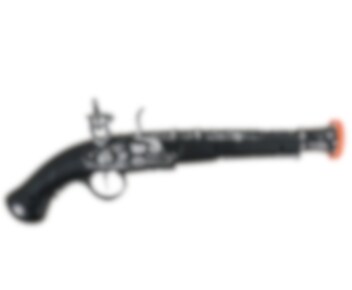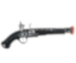 Coole Plastikpistole, die Sie zu Ihrem Piratenkostüm tragen können. Ziehen Sie den Hahn zu sich, um die Waffe zu laden, und betätigen Sie dann den Abzug. Die Waffe ist etwa 35 cm groß.
