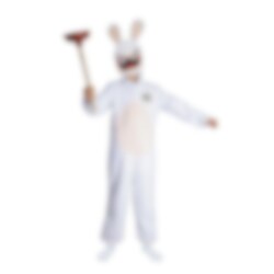 - Enthält: Weißer Jumpsuit mit beigem Bauch, Kapuze mit Ohren, Rabbids-Logo auf der Brust und Reißverschluss für einfaches An- und Ausziehen. Eine Rabbids-Maske aus Karton ist ebenfalls enthalten.