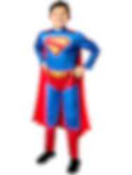 Fliegen Sie als Superman durch die Lüfte – mit diesem Deluxe-Kostüm mit gepolsterten Muskeln! Das ikonische S-Logo, der rote Umhang und die zusätzlichen Designdetails verleihen Ihrem Kind einen kraftvollen und stilvollen Superhelden-Look. Ideal für Fasching und Halloween.