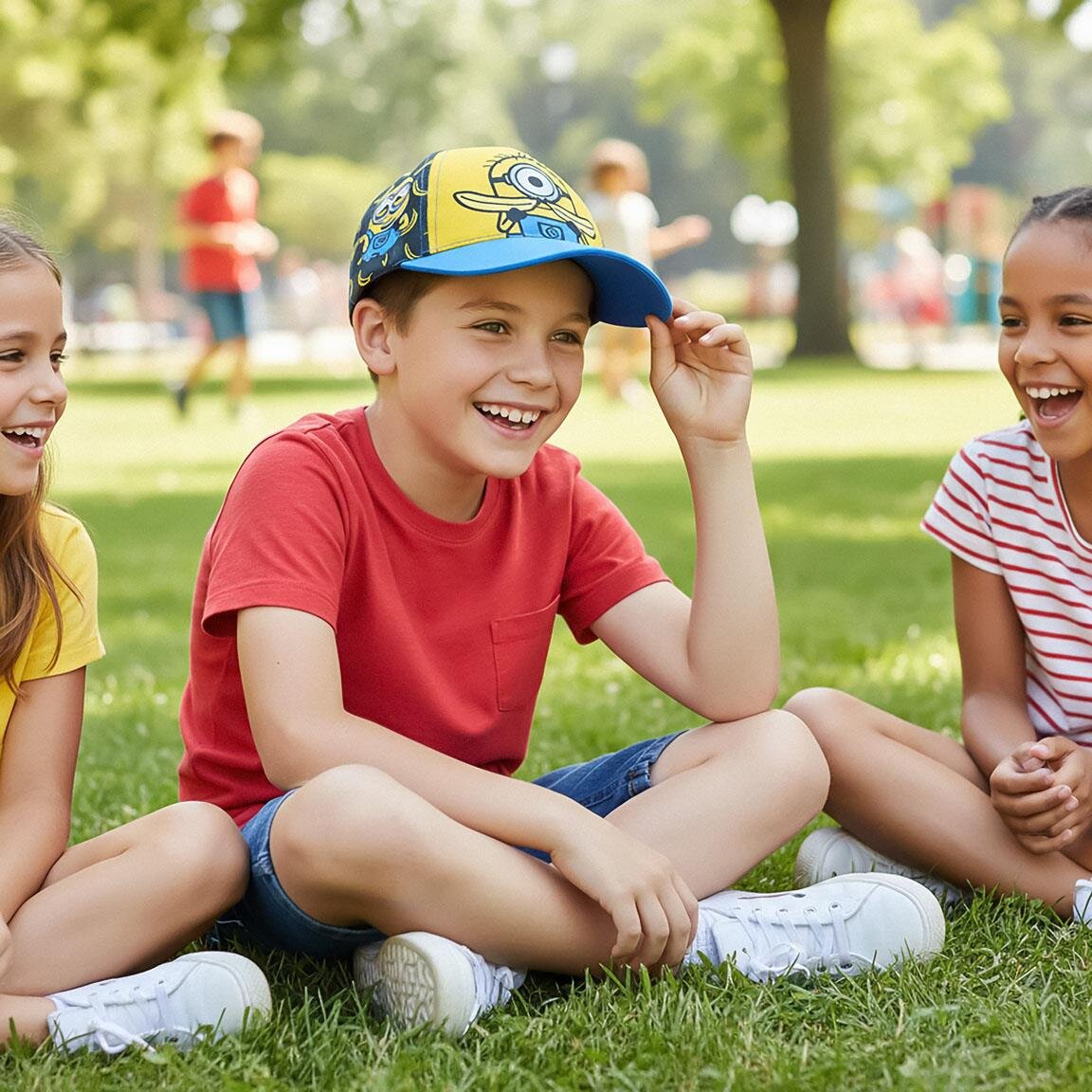 Eine bunte Kindercap im Minions-Design mit verspieltem Look und lustigen Motiven, die bei Kindern sehr beliebt ist. Perfekt für sonnige Tage, zum Spielen und für Ausflüge.