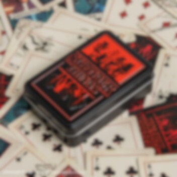 Das Kartenset wird in einer robusten Metallbox mit Stranger Things-Design geliefert, die die Karten schützt und sich zugleich dekorativ im Regal macht.