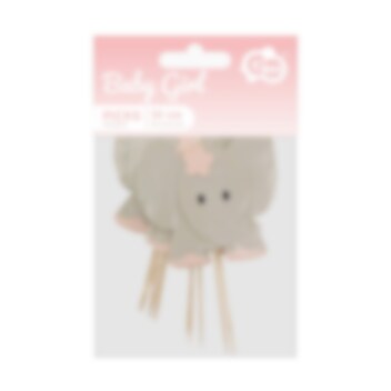 10 dekorative Cupcake Topper zum Platzieren auf Backwaren. Die Elefanten sind sowohl für Babypartys als auch für Partys zum 1. Geburtstag ein süßes Accessoire. Die Elefanten bestehen aus Pappe und sitzen auf einem Holzstab. Höhe 10 cm.