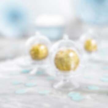 3 Geschenkboxen in Form einer Patisserie Glocke. Die süßen, kleinen Boxen sind transparent. Legen Sie gerne ein oder zwei Leckereien hinein und stellen Sie sie zur Schau, wenn die Tische für Kinderpartys und andere Anlässe festlich gedeckt werden. Die kleinen Boxen sind etwa 7,5 x 5,5 cm groß.
