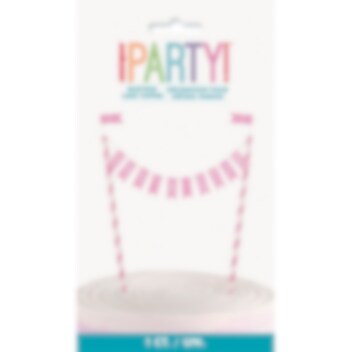 Tortendekoration in Rosa und Weiß mit dem Text "It's a Girl“. Es macht Spaß, den Kuchen damit zu dekorieren, wenn es Zeit für Babypartys ist. Die Dekoration besteht aus Papier und ist etwa 21 cm hoch.