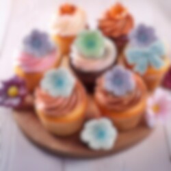 Dieses Set enthält 10 detailreiche Zuckerdekorationen in Form von Blumen und Schleifen in sanften Blau-, Lila- und Grüntönen, perfekt für eine stilvolle und harmonische Dekoration auf Cupcakes, Torten und anderen festlichen Gebäcken.