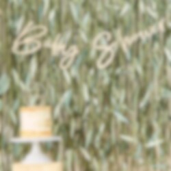 Girlande aus Holzmaterial mit den Worten "Baby shower“ aus dem umweltfreundlichen Thema "Botanical Baby“. Eine stilvolle Dekoration für jede Babyparty. Im Lieferumfang ist neben der Girlande auch eine 2 Meter lange Bindfadenschnur enthalten.