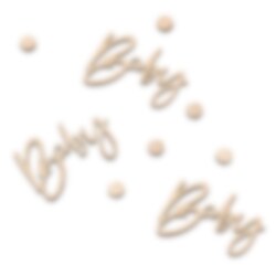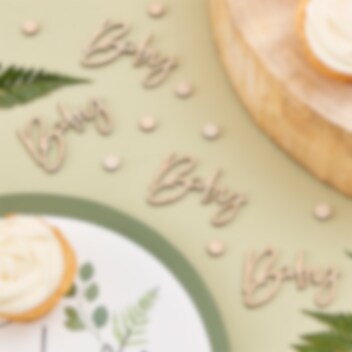 Verpackung mit Konfetti aus Holzmaterial zum Thema "Botanical Baby“. Dekorieren Sie damit den Tisch, wenn es Zeit für Babypartys oder Taufen ist. Die Packung enthält etwa 14 Gramm.