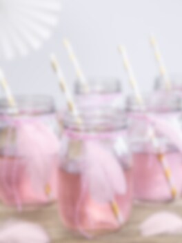 Verpackung mit feinen Zierfedern in mattem Pastellrosa. Dekorieren Sie den Tisch damit vor der Kinderparty oder Feier. Die Packung enthält 3 Gramm.