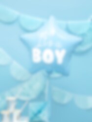 Sehr schöner, blauer, sternförmiger Folienballon mit dem Text "It's a boy“ in Weiß. Ein wunderbarer Ballon, der die Babyparty dekorativer macht. Der Ballon hat einen Durchmesser von ca. 45 cm.