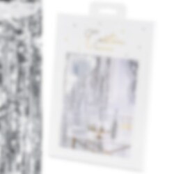 Vorhang in silberner Farbe. Eine schöner Dekoration zum Aufhängen an der Tür oder an der Wand für eine Party jeglicher Art. Der Vorhang ist etwa 90 x 250 cm groß.