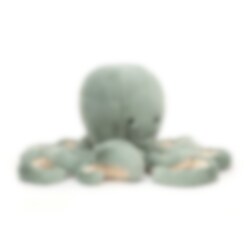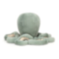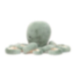 Ein wirklich großer und lustiger Tintenfisch in einem herrlichen Farbton von mildem Grün mit cremeweißem breitem Manchester auf der Unterseite der acht gewundenen Tentakeln. Dieser fröhliche und kuschelige Tintenfisch ist ein guter und gemütlicher Freund, der auch unruhigen Fingern etwas zum Spielen gibt. Hergestellt aus 98 % Polyester, 2 % Nylon und wird bei Bedarf von Hand gewaschen.