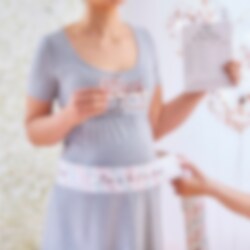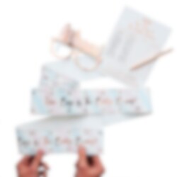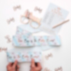 Das Erraten der Größe des Bauches der Mutter ist ein beliebtes Spiel und eine beliebte Aktivität bei Babypartys. Dieses Paket enthält ein Maßband (200 cm x 7 cm), eine Punktekarte und eine Siegerbrille aus Pappe.