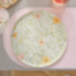 8 schöne Pappteller mit Blumenmuster aus der Kollektion Floral Baby. Ein belebendes Thema, das in warmen und sommerlichen Farbtönen gehalten ist. Diese Teller sind wunderbar süß, um sowohl für Babypartys als auch für Taufen zu decken. Die Teller haben einen Durchmesser von 25 cm.
