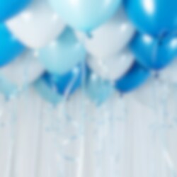 Schönes Ballon-Set in blauen und weißen Farbtönen, mit dem Sie die Decke vor jeder Feier dekorieren können.