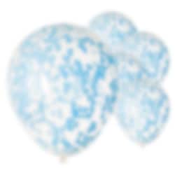 5 ausgefallene Luftballons gefüllt mit blauem herzförmigem Konfetti. Eine schöne Dekoration für jede Art von Feier. Die Ballons haben im aufgeblasenen Zustand einen Durchmesser von etwa 25 cm. Füllen Sie den Ballon selbst mit Konfetti und blasen Sie ihn dann manuell mit einer Ballonpumpe oder Helium auf. Reiben Sie den Ballon dann an einem Stoff, um statische Elektrizität zu erzeugen. Auf diese Weise bleibt das Konfetti an der Innenseite des Ballons haften.