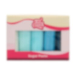 Das FunCakes Rollfondant Multipack Blautöne enthält eine harmonische Palette aus Weiß und verschiedenen Blautönen, ideal für kreative Tortendekorationen. Mit feinem Vanillegeschmack, geschmeidiger Konsistenz und hoher Flexibilität eignet sich dieses Fondant perfekt zum Eindecken, Modellieren und Ausschneiden von Formen.