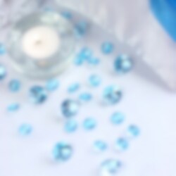 100 ausgefallene "Diamanten“ in einem hellen Blau-/Türkis-Ton zum Dekorieren des Tisches, wenn eine Party oder ein Fest ansteht. Die Diamanten bestehen aus Acrylkunststoff, sehen aber echt aus und funkeln schön im Licht. Die Diamanten haben einen Durchmesser von etwa 12 mm. Die Packung enthält 34 Gramm (ca. 100 Diamanten)