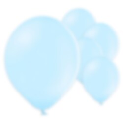 50 wunderschöne Latexballons in hellblauer Pastellfarbe zum Dekorieren für festliche Anlässe. Die Ballons sind im aufgeblasenen Zustand etwa 30 cm groß und können mit Luft oder Helium gefüllt werden.