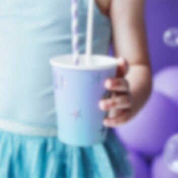 6 Pappbecher in Blau und Lila mit Meeresmotiven in Silberfolie. Schöne Ergänzung zum Partygeschirr mit Meeresmotiven. Die Becher sind etwa 9 cm hoch und fassen ca. 220 ml.