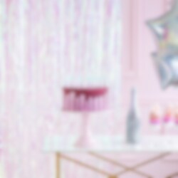 Vorhang in schimmernder perlenweißer Farbe. Eine schöner Dekoration zum Aufhängen an der Tür oder an der Wand für eine Party jeglicher Art. Der Vorhang ist etwa 90 cm x 250 cm groß.