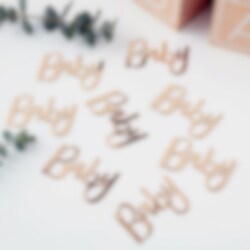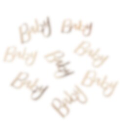 Verpackung mit luxuriösem Konfetti in Goldfolie mit dem text "Baby“. Schön, um den Tisch für die Babyparty damit zu dekorieren. Die Packung enthält 14 Gramm.
