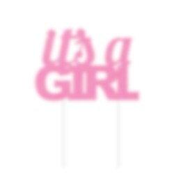 Glitzernde Tortendekoration in Rosa mit dem Text "It's a Girl“. Eine schöne Dekoration für die Torte zur Babyparty. Die Dekoration besteht aus Kunststoff und ist etwa 20 x 18 cm groß.
