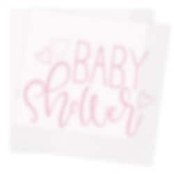 16 weiße Servietten mit dem Text "Babyshower" in Rosa auf einer Seite. Die Servietten hat 2-lagen und ist 33 x 33 cm entfaltet.