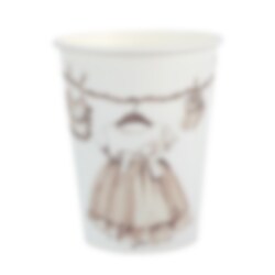 Schöne Pappbecher aus der Little Teddy-Serie, die sich sowohl für Babypartys als auch für Taufen und andere Feierlichkeiten für die Kleinen eignen. Das Motiv mit Kleidung und kleinen Details aus der Babyzeit verleiht der Tischdekoration eine liebevolle und dekorative Note.