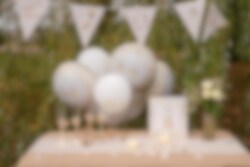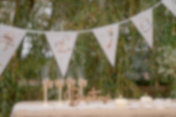 Die Wimpelkette passt gut hinter den gedeckten Tisch, an den Geschenktisch oder als Dekoration im Raum.