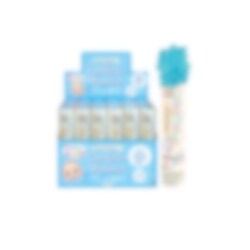 Konfettikanone gefüllt mit blauem Konfetti. Eine lustige Sache bei der Babyparty, wenn Sie das Geschlecht des Babys verraten möchten.